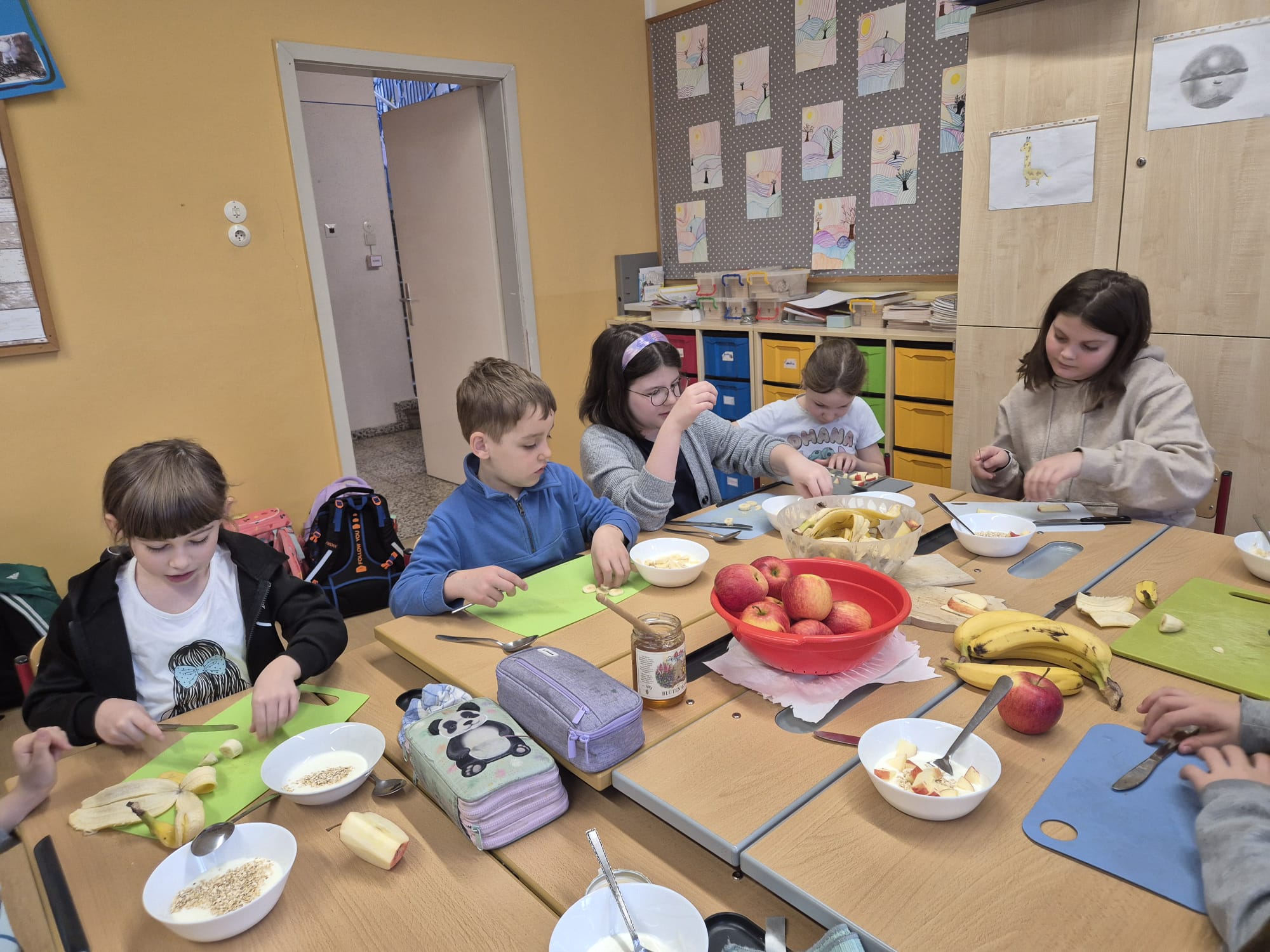 Vor den Osterferien wurde in der Volksschule ein abwechslungsreicher Oster-Stationentag organisiert. Die Kids wurden in fünf Gruppen eingeteilt und jede Gruppe durfte die verschiedenen Stationen durchlaufen. In der Musikstation begleiteten die Kinder ein Lied mit sogenannten Boomwhackers, auf der Englisch-Station ging es ums Reimen von englischen Gedichten, auf einer weiteren Station wurden Versuche rund ums Ei gemacht, auf Station vier gestalteten die Kids Bastelarbeiten mit verschiedensten Materialien zum Thema Osterbrauchtum und in der Küchenstation ging es um die Fairtrade-Banane. Anschließend bereiteten die Buben und Mädchen ein gesundes Haferflockenmüsli mit Obst zu, das hervorragend geschmeckt hat.
